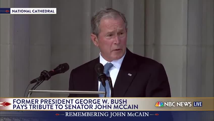 During a funeral service for Senator John McCain, former President George W. Bush spoke with reverence for his fellow Republican colleague. McCain died at age 81 on Aug. 25.