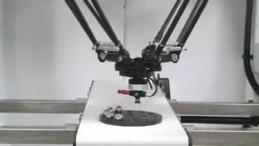 http://www.adept.com/products/robots/parallel/quattro-s650h/intro The High Speed Industrial Robot Adept Quattro s650 robot handling steel ball bearings at hi...