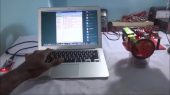 This helicopter mimics the movement of a swashplate via two high speed solenoids which are connected (via ropes) to the rotor blades pitch/angle of attack ax...