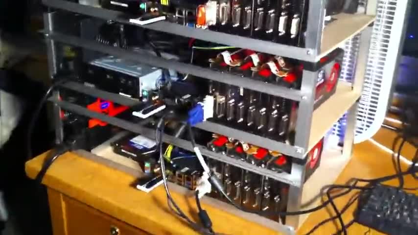 5Gh/z in hashing power, just added another mining rig, A very compacted set up, currently with 3 system it only takes up 3 x 3 x 2 feet. I have 8x5870 and 4x...
