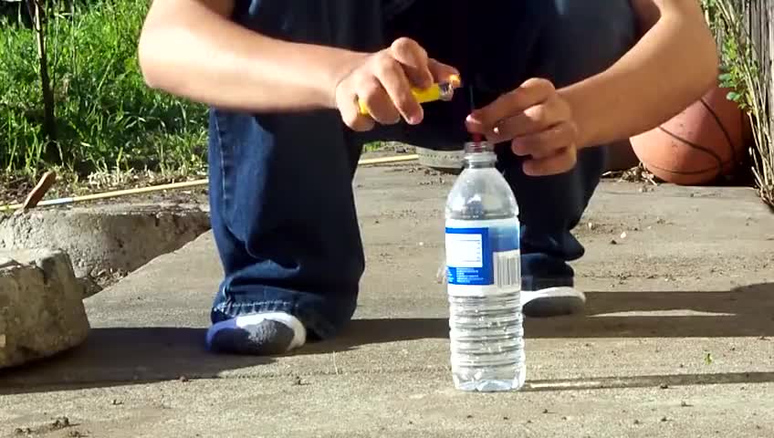 I PUT A WATERPROOF FIRE CRACKER IN A WATER BOTTLE