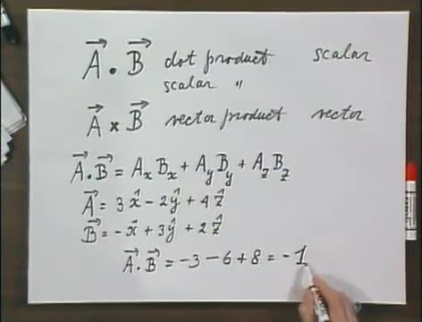 Walter Lewin, Physics, Dot product, scalar, vector product, cross product, vector