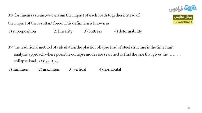 در این فرادرس سعی شده که تمامی مباحث پایه ای در زمینه زبان انگلیسی عمران آموزش داده شود و مطالبی مانند درک مطلب یا فصل هایی همچون مدیریت ساخت را شامل شود. استفاده از این فرادرس این امکان را به دانشجو می دهد که اطلاعات جامعی را کسب کرده و در زمینه خواندن متون تخصصی عمران به مشکل نخورد. خصوصیت این فرادرس فشرده بودن و کاملاً گویا بودن آن است.