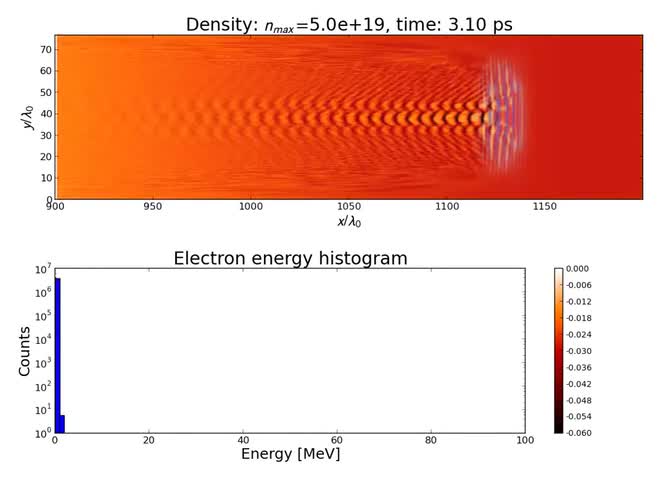 PIC, numerical simulation, laser matter interaction, electron acceleration, wakefield, picls, Animation
