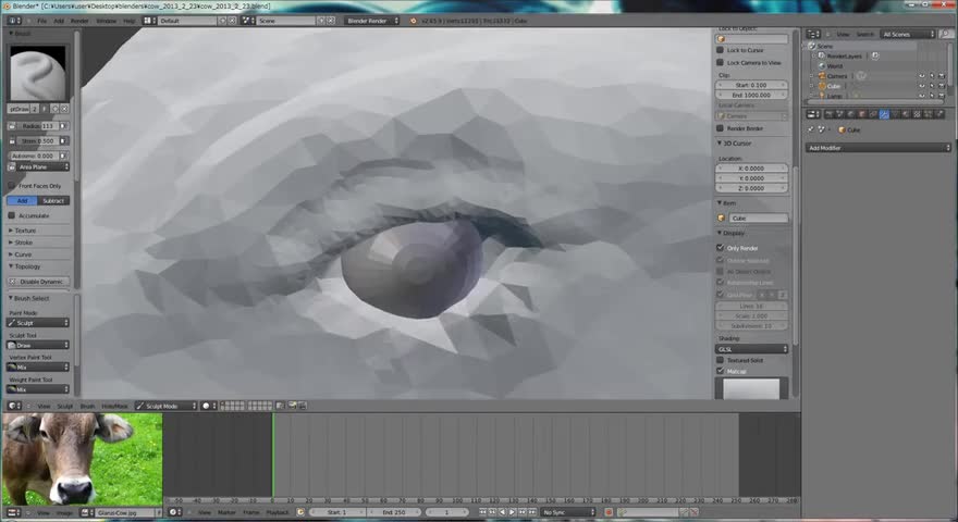 Blender, (software), Dynamic, topology, cow, sculpt, time, lapse