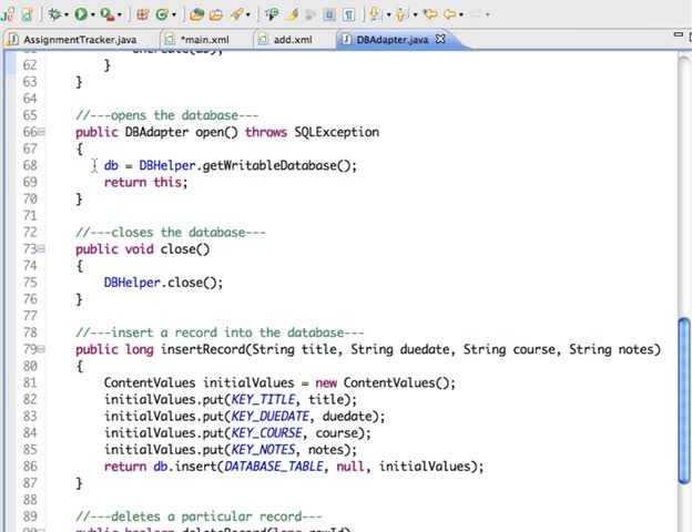 Creating and using an Android SQLite database with a helper class. A copy of the DBAdapter.java and other files used in this tutorial is available for downlo...