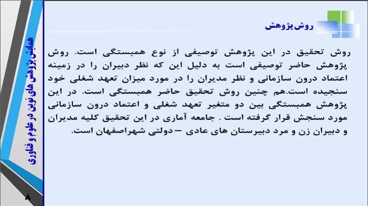 این مقاله به صورت شفاهی در همایش پژوهش های نوین در علوم و فناوری ارائه شده است. http://emaconf.ir