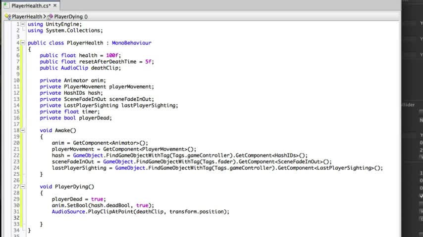 Watch this video in context on Unity's learning pages here - http://unity3d.com/learn/tutorials/projects/stealth/player-health Learn about how the player's h...