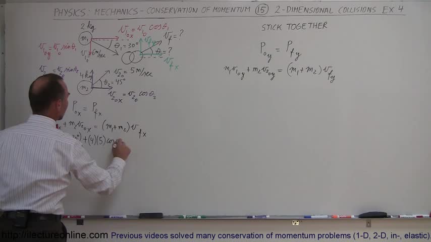 Visit http://ilectureonline.com for more math and science lectures! In this video I will find velocity final of a 2-dimensional collision, example 4.