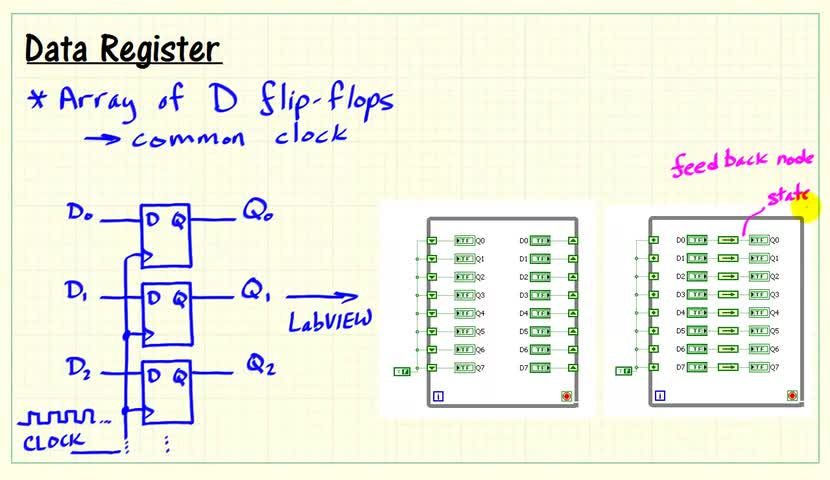 National Instruments, LabVIEW, LabVIEW FPGA, flip-flop shift, register feedback, node