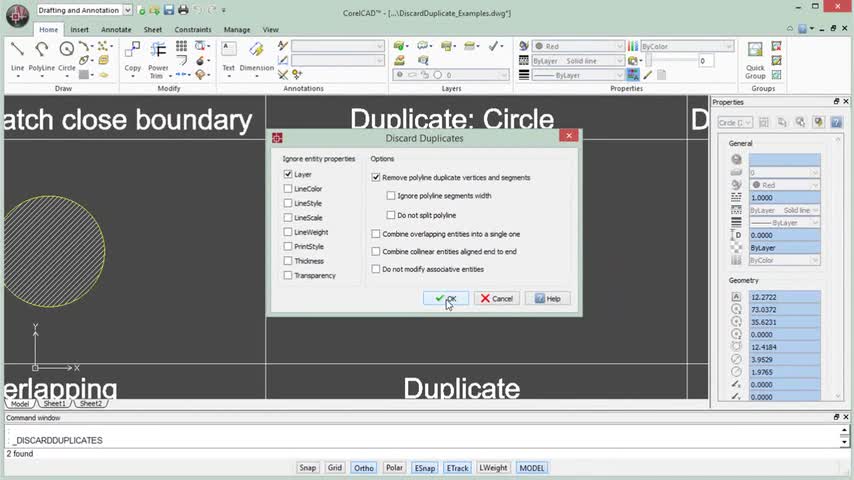 Explore the expanded editing tools in CorelCAD: The DiscardDuplicates tool helps simplifying geometry. Detailed product information and free trial download: ...