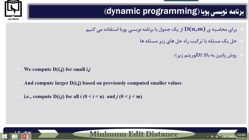 جلسه سوم: بحث یافتن مینیمم فاصله ویرایشی