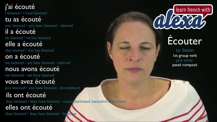 Alexa conjugates the French verb ÉCOUTER (TO LISTEN) in the Passé Composé. SUPPORT GUIDE and EXCLUSIVE VIDS at ► https://learnfrenchwithalexa.com -----------...