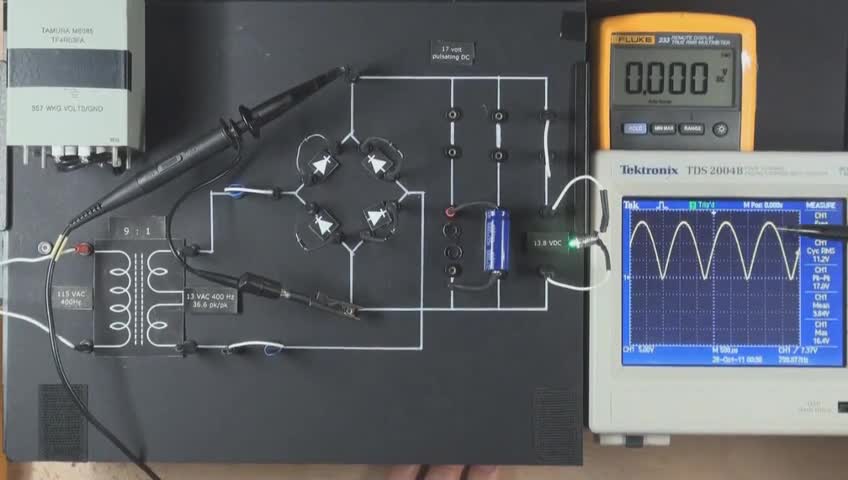 +Power, supply, +step-down, transformer, +full, wave, bridge, rectifier, +filter, capacitor, +400, Hz