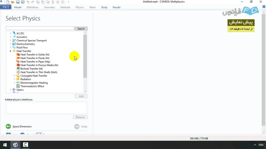 آشنایی با نحوه انتخاب فیزیک مورد نظر و نوع حل از محیط داخلی نرم افزار