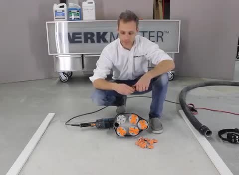 WerkMaster Training Video for Removing Epoxy Paint & Coatings, Polishing Concrete, Densifying and Sealing Concrete with the new Scarab handheld grinder. Show...