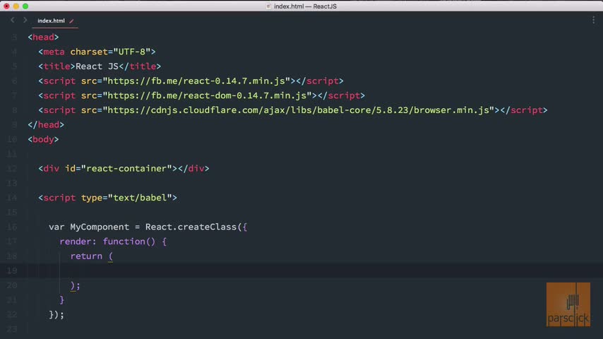 خوش آمدید به آموزش ReactJS توسط پارس کلیک. ریاکت (که به صورت React.js یا ReactJS نیز خوانده میشود)، یک کتابخانه متنباز جاوااسکریپت برای ساخت رابطهای کارب...
