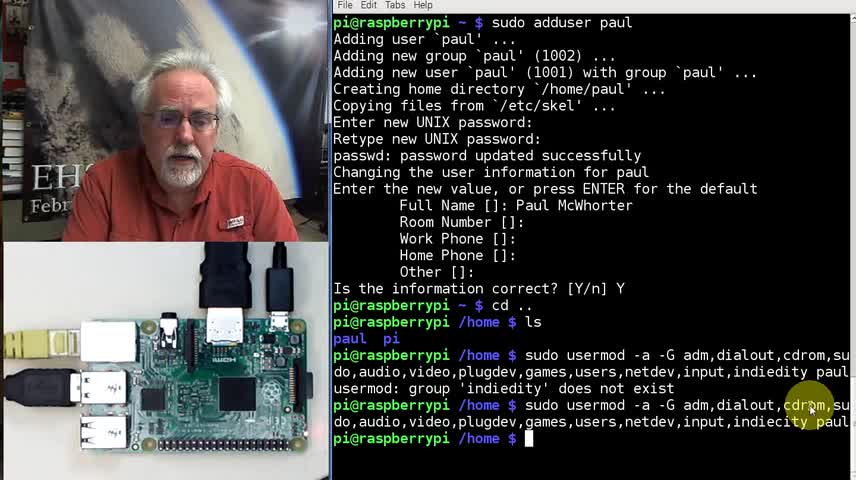This video shows how to create a new user account on the Raspberry Pi with the same admin privileges as Pi. This will give access to the sudo command and all...