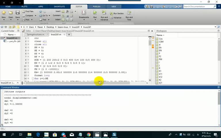 پروژه تحلیل خرپای دو بعدی پنج عضوی با چهار تکیه گاه با ماتریس سختی در MATLAB در لینک زیر:https://takcivil.com/two-dimensional-truss-analysis-matrix-hardness-matlab