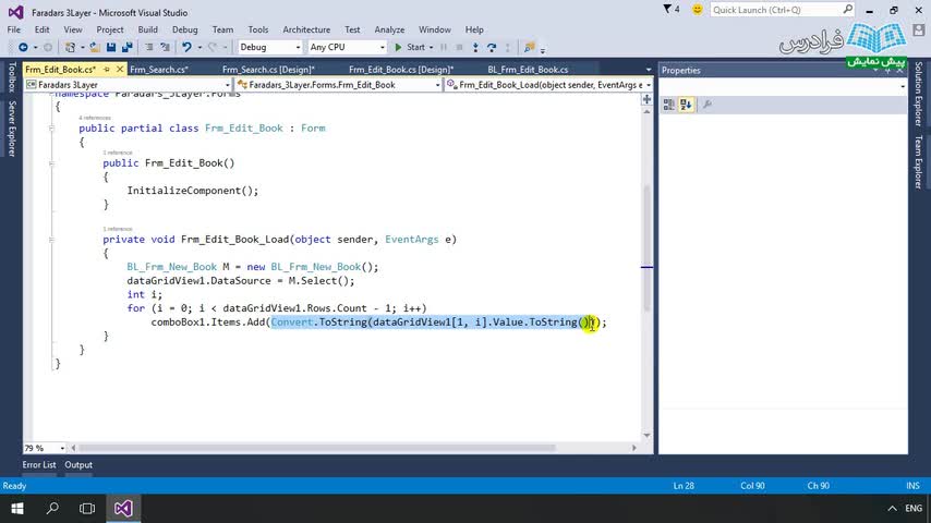نمایش داده و فراخوانی اطلاعات از بانک و قرار دادن آن درون کنترل های نمایشی برابر با معماری سه لایه