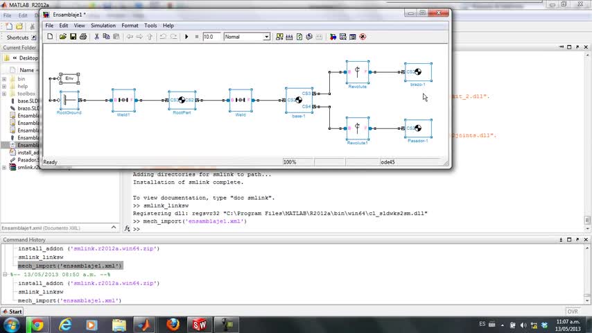 Este tutorial permite enlazar piezas y ensambles diseñados en SolidWorks y controlarlos directamente desde Matlatb utilizando la herramienta SimMechanics.