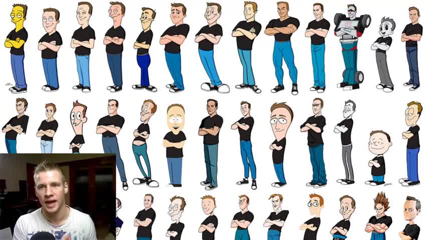 Credit for the the thumbnail/background goes to artist Kevin McShane: http://laughingsquid.com/artist-kevin-mcshane-draws-himself-in-100-different-cartoon-st...