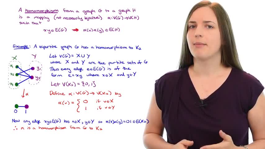 In this video we recall the definition of a graph isomorphism and then give the definition of a graph homomorphism. Then we look at two examples of graph hom...