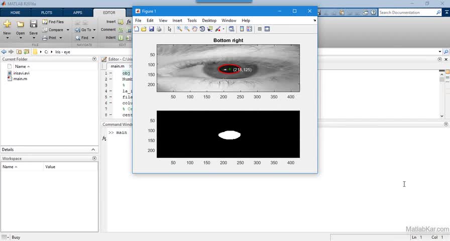 پروژه تشخیص و ردیابی عنبیه چشم از فایل ویدئویی با اصول پردازش تصویر در MATLAB در لینک زیر:https://matlabkar.com/recognition-and-tracking-iris-the-eye-from-video-in-matlab