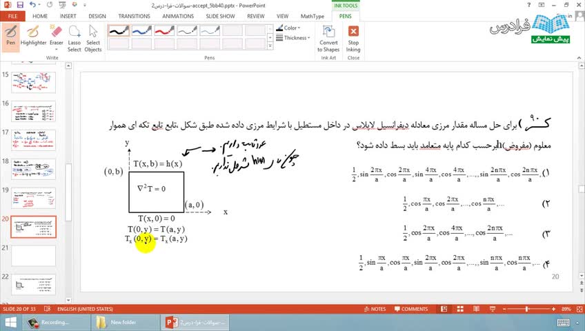 حل تست های کنکور ارشد معادلات با مشتقات جزئی از سال ۹۰ تا ۹۶ به صورت کاملاً تشریحی