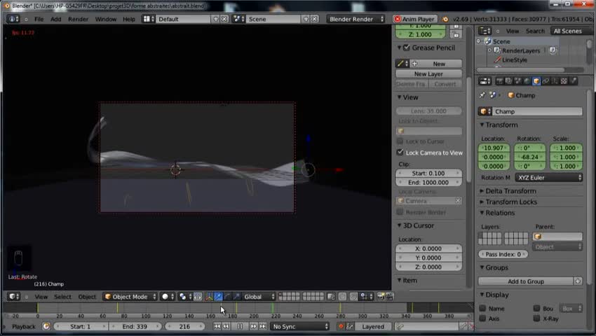 Tutoriel débutant sous Blender, réaliser l'animation de formes abstraites. page: https://www.facebook.com/pages/IK-Work-In-Progress/185430151504175