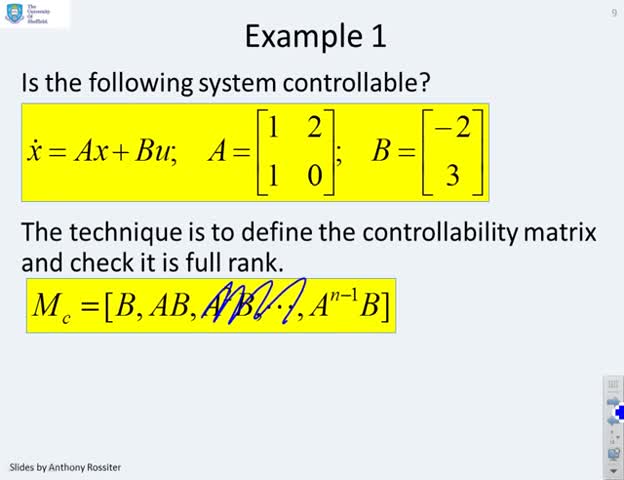 This resources introduces a core test for controllability, that is the ability to take a state to a specified point in a specified time. Numerical examples a...