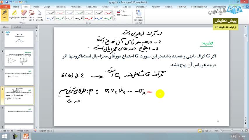 دانلود فرادرس آموزشی رایگان,دانلود فیلم آموزشی رایگان,دانلود جزوه تصویری آموزشی,دانلود کتاب تصویری آموزشی,آموزش غیر حضوری و الکترونیکی,دوره آموزشی تخصصی، adjacency matrix, AND TRAILS, automorphism, cartesian product graph, chromatic color-polynomials, chromatic number, critical subgraphs, cut-edge, CYCLES, degree in graph, Hall’s Theorem, independent set, isomorphism, k-regular graph, Kruskal algorithm, PATHS, Petersen graph, Planar Graphs, prim algorithm, self-complementary graphs, spanning tree, Tutte’s 1-factor, الگوریتم DFS, الگوریتم پریم, الگوریتم کراسکال, الگوریتم هال, اویلر, پوشش, تطابق, تعریف گراف, تعریف مکمل, چندجمله ای رنگی, چندجمله ای کروماتیک, خودمکملی, خودیکریختی, درخت پوشا, درخت پوشایی کمینه, درخت فراگیر, دور در گراف, دور در گراف ها, دوگان گراف مسطح, رأس برشی, راس برشی, عامل, عدد رنگی, فرمول اویلر, قضیه کورتوفسکی, گراف ازاد مثلث, گراف بحرانی, گراف مسطح, گراف های اویلری, گراف های جهت دار, گراف های چند مؤلفه ای, گراف های خاص, گراف های دوبخشی, گراف های ساده, گراف های همسان ریخت, ماتریس مجاورت, ماتریس مجاورت گراف, مجموعه مستقل, نظریه گراف, همبندی, یال برشی, یکریختی گراف