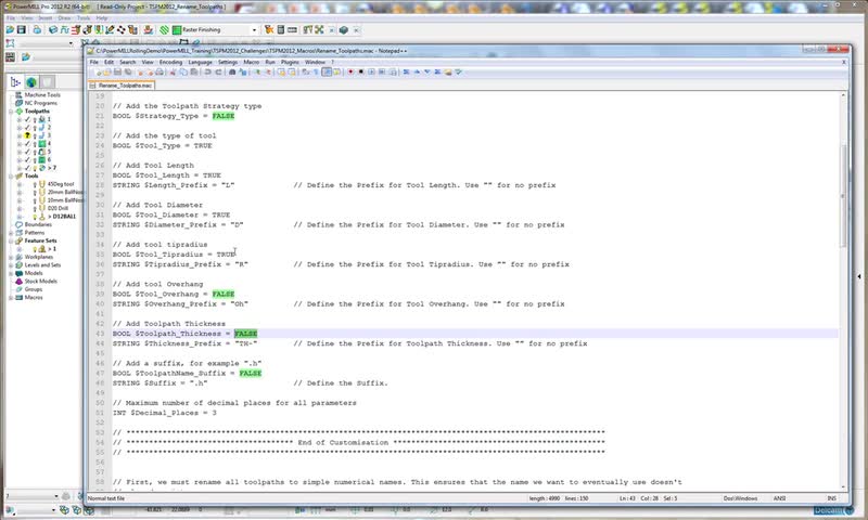 Automatically rename all toolpaths using the toolpaths settings