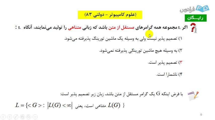 DFA, grammer, master thorem, NFA, تست کنکور ارشد, درخت بازگشت, زبان منظم, قضیه اصلی recursive, کنکور ارشد, گرامر, ماشین متناهی, نظزیه زبان ها و ماشین،دانلود فرادرس آموزشی رایگان,دانلود فیلم آموزشی رایگان,دانلود جزوه تصویری آموزشی,دانلود کتاب تصویری آموزشی,آموزش غیر حضوری و الکترونیکی,دوره آموزشی تخصصی