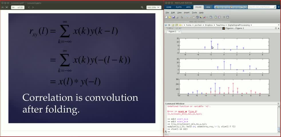 This video is about convolution, correlation, their connections and differences and also some exercises in Matlab.