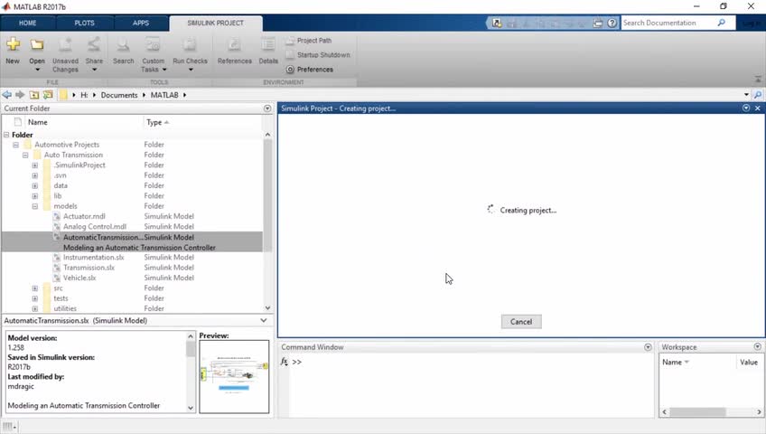 This simple, quick process sets up your project and introduces you to Simulink Project features so that you can more effectively manage your design files, collaborate with your team, automate repetitive tasks, and integrate with source control and configuration management tools.