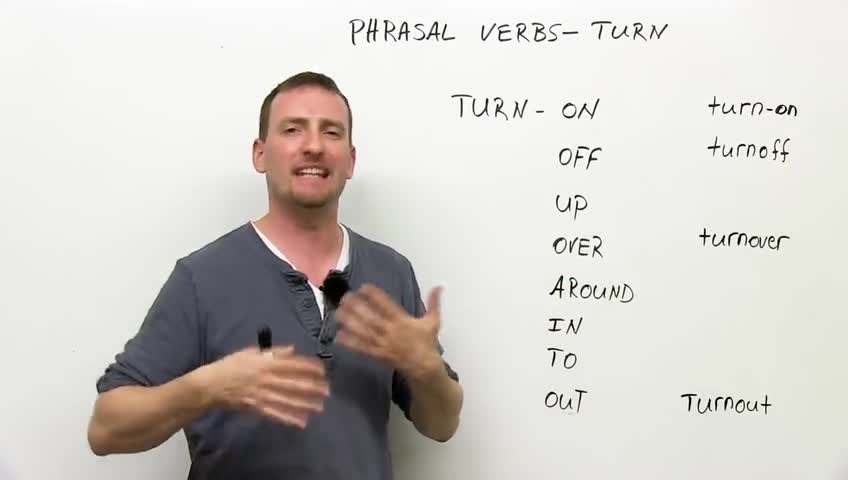 http://www.engvid.com Learn nine phrasal verbs with the verb TURN. You've heard these phrases before but weren't sure what they meant. In this English lesson, learn phrases such as turn in, turn over, and turn out. Take a quiz on this lesson here: http://www.engvid.com/turn-phrasal-verbs/
