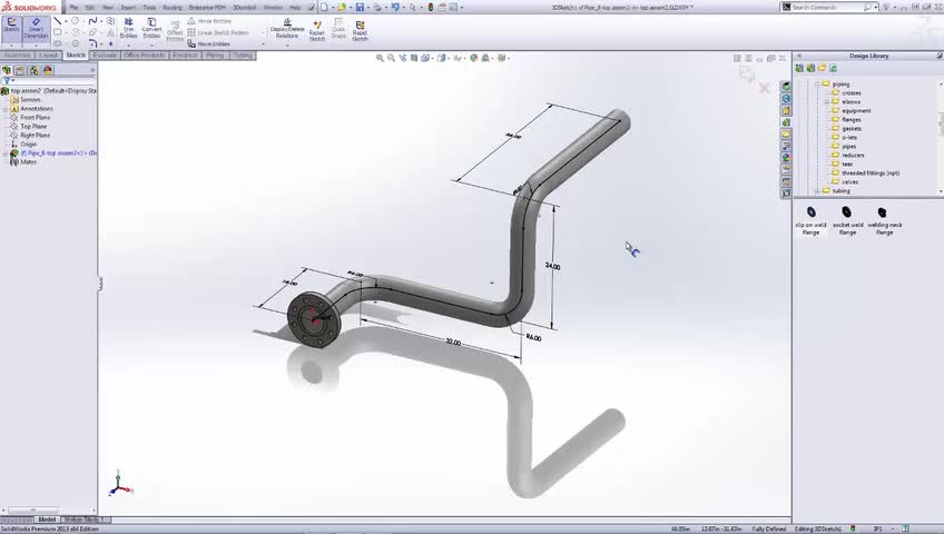 Learn to quickly create pipe spools using SolidWorks Routing. By using 3D Sketches and library parts, it i