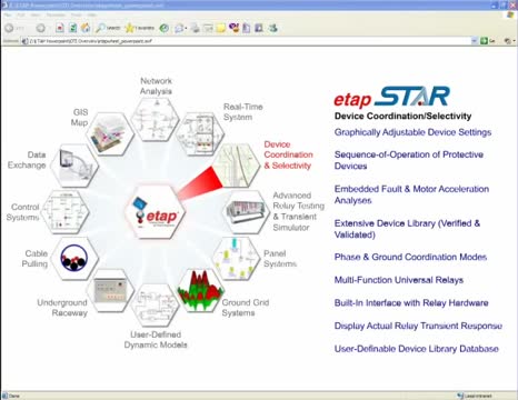ETAP Star is a protective device coordination and sequence-of-operation analysis program with over 100,000 validated and verified device libraries.