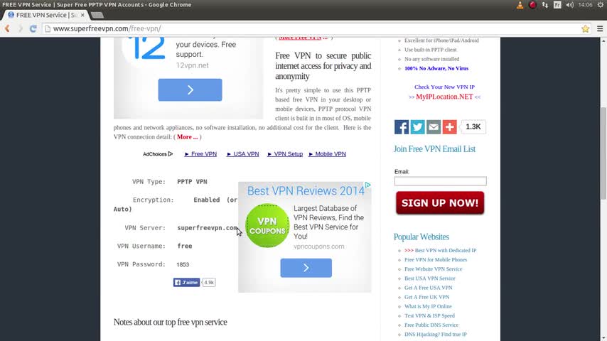Connect Free VPN in Ubuntu 14.04 LTS