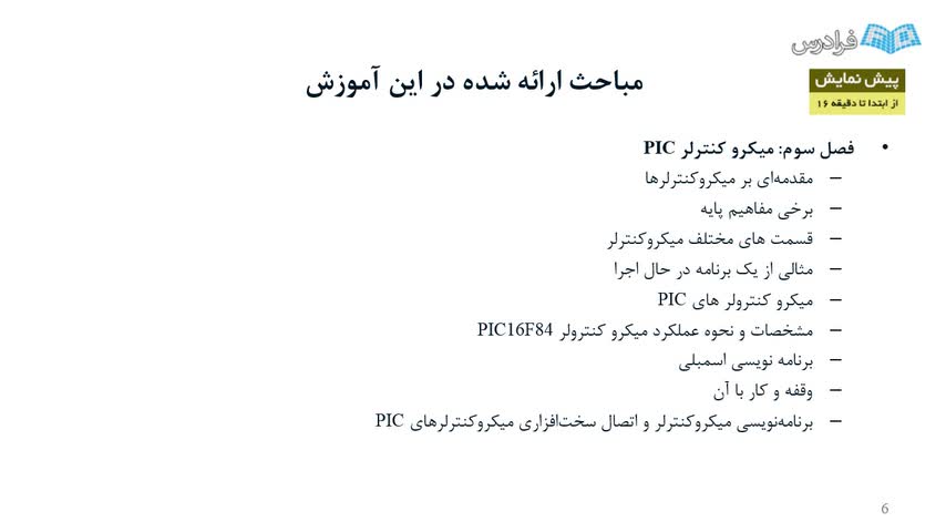 Digital Electronic, FET, Mechatronics, Microcontroller, Robotics, Stepper Motor, اجزاء الکترونیکی, الکترونیک دیجیتال, تایمر, ترانزیستور, توابع بولی, جبر بول, خازن, دیود, رباتیک, رگولاتور, رله, سلف, سیگنال دیجیتال, فیلترهای RC و RLC, کانتاکتور, کانتر, گیت های منطقی, مدارهای الكتریكی, مدارهای مجتمع, مقاومت, مکاترونیک, موتورهای پلهای, میکروکنترلر،دانلود فرادرس آموزشی رایگان,دانلود فیلم آموزشی رایگان,دانلود جزوه تصویری آموزشی,دانلود کتاب تصویری آموزشی,آموزش غیر حضوری و الکترونیکی,دوره آموزشی تخصصی