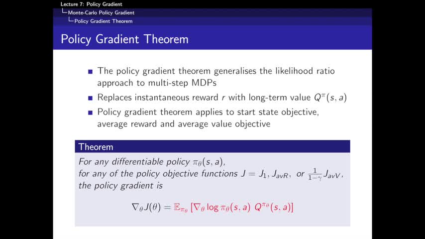 #Reinforcement Learning Course by David Silver# Lecture 7: Policy Gradient Methods (updated video thanks to: John Assael) #Slides and more info about the cou...