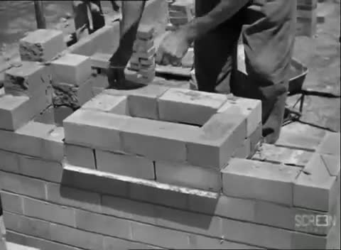 building, bricks, brick, houses, bricklayers, plumbers, tilers, carpenters, architects, world, war, stock, footage, library, screen, australia, commentary, e...