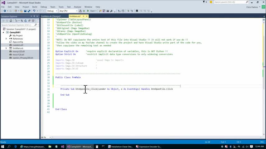 Visual Basic .NET (Programming Language), C# (Programming Language), OpenCV (Software), Microsoft Visual Studio (Software), Windows 10, Tutorial (Media Genre)
