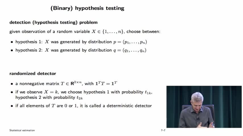 7. Statistical estimation Maximum likelihood estimation (00:28) Optimal detector design (23:22) Experimental design (36:18)