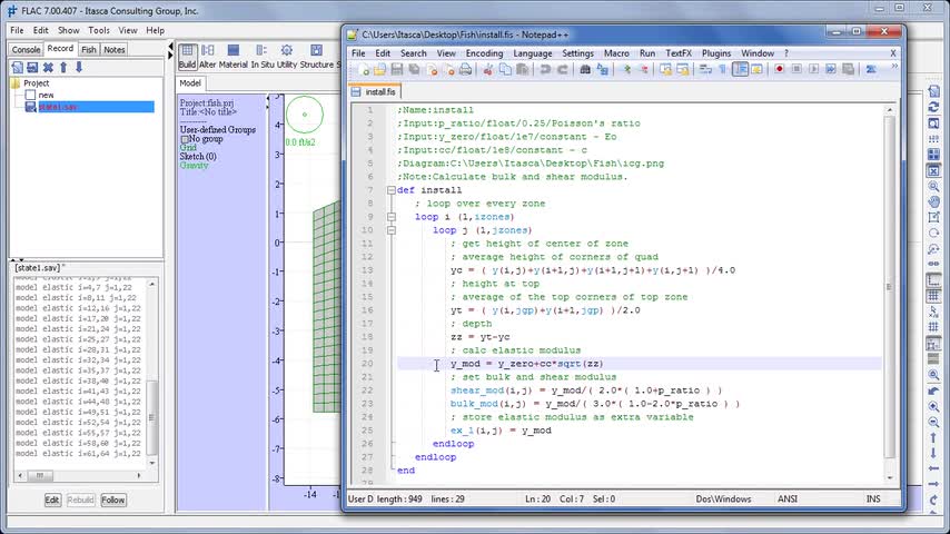 This video introduces you to the FISH programming language in FLAC. We look at a FISH function that sets the bulk and shear modulus for a soil based on depth...