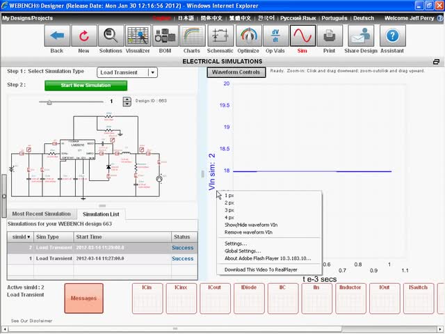 This presentation shows how a user can run Spice simulations in WEBENCH Power Designer. This includes selection of different simulation types such as steady ...