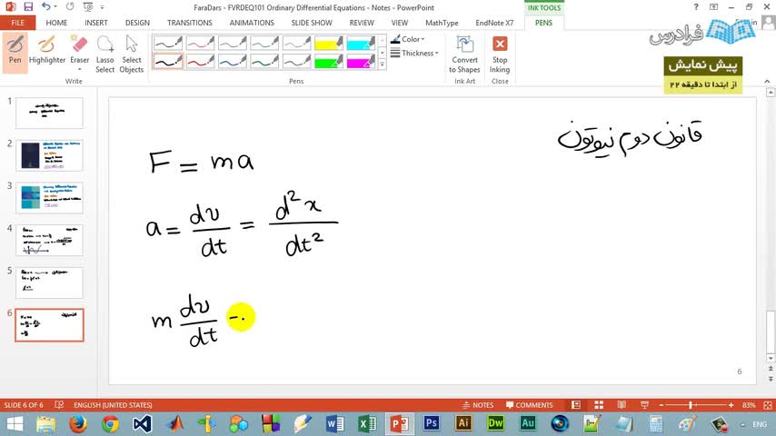 حل و بررسی معادلات دیفرانسیل (Differential Equations) یکی از مهم ترین مباحث در ریاضیات محض و کاربردی، فیزیک و رشته های فنی-مهندسی می باشد. چرا که معادلات دیفرانسیل، علاوه بر اهمیت تئوریک و نظری که دارند، زبان استاندارد مدل سازی ریاضی و توصیف رفتار سیستم ها و طبیعت نیز هستند. از این رو، یکی از مهم ترین درس هایی که در مقطع کارشناسی بسیاری از رشته های فنی-مهندسی و علوم پایه تدریس می شود، درس «معادلات دیفرانسیل معمولی» (Ordinary Differential Equations) است.