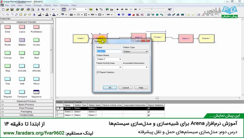 "آموزش نرم‌افزار Arena برای شبیه‌سازی و مدل‌سازی سیستم‌ها درس دوم: مدل‌سازی سیستم حمل و نقل پیشرفته"