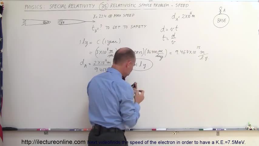 Visit http://ilectureonline.com for more math and science lectures! In this video I will finds time=? for a space ship, pursued by an enemy, to make it back ...